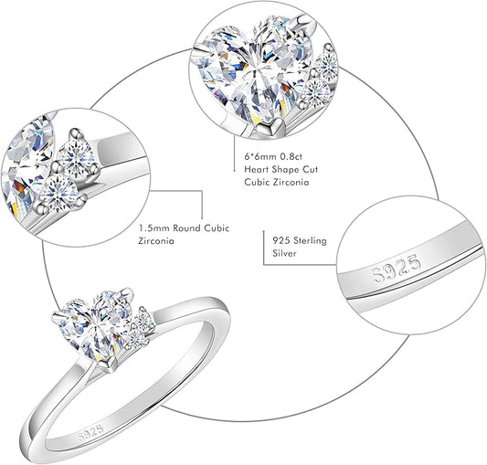 925 Sterling Silver Heart Engagement Ring 0.8CT Dainty Birthstone - Size 6