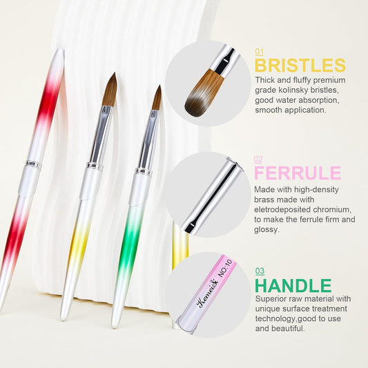 Acrylic Nail Brush Set, Size 06/10/14 Kolinsky Nail Art Brushes - 3 Brushes