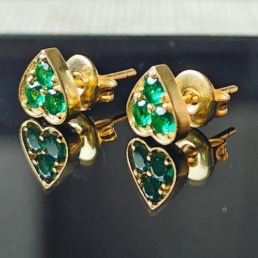 18K Gold Plated 3-Stone Zirconia Halo Stud Earrings - GREEN