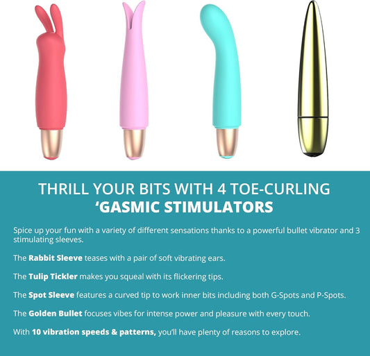 Adam & Eve Playful Seduction Sex Toy Kit, Bullet Vibrator & 3 Silicone Sleeves