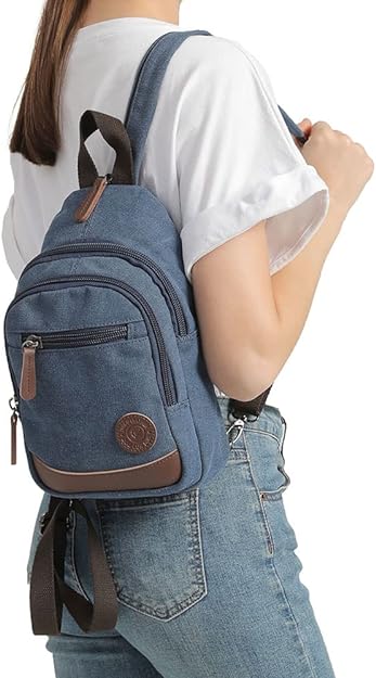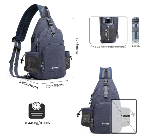 Sling Bag Canvas Crossbody Backpack with USB Charging Port