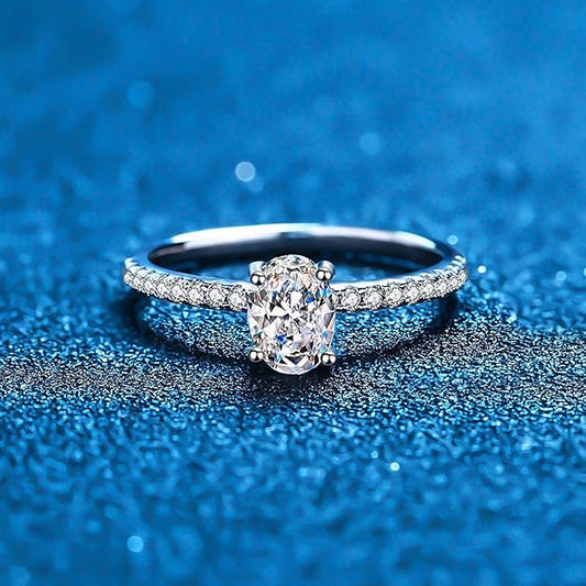 Promise Ring, 1.0 CT S925 Sterling Silver Oval, Cubic Zirconia - Size 6.5