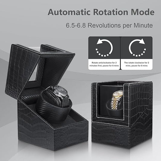 Single Watch Winder, Black Watch Winder Crocodile Pattern Leather
