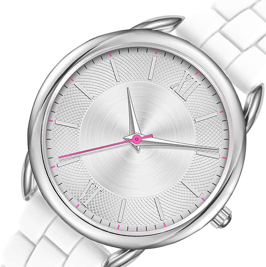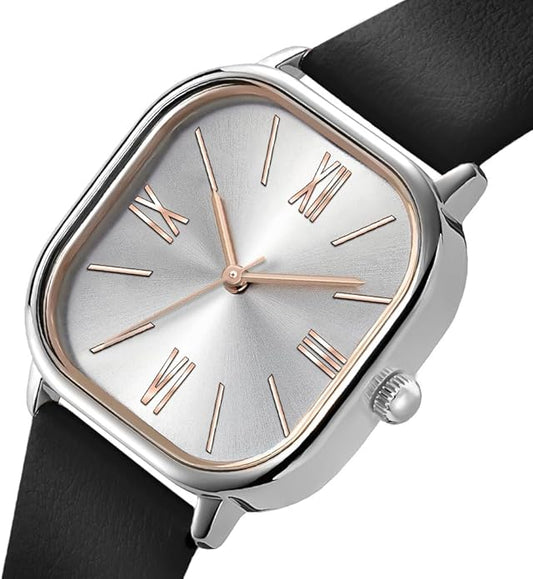 Watch for Women Leather Band Waterproof Analog - Black/Silver