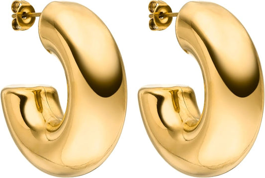 Chunky Hoops Earrings for Women 14K Gold Plated