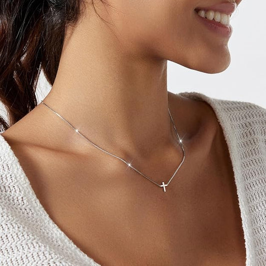 Gold Cross Necklace for Women Silver Plated Dainty