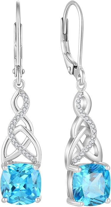 Earrings 925 Sterling Silver, Infinity Celtic Knot Dangle Drop- Birthstone March Aquamarine