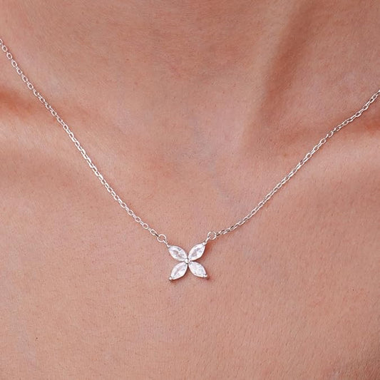 Necklaces for Women 18K Gold Plated - Jewelry 4 Zircon Cluster Flower-Shaped - SILVER