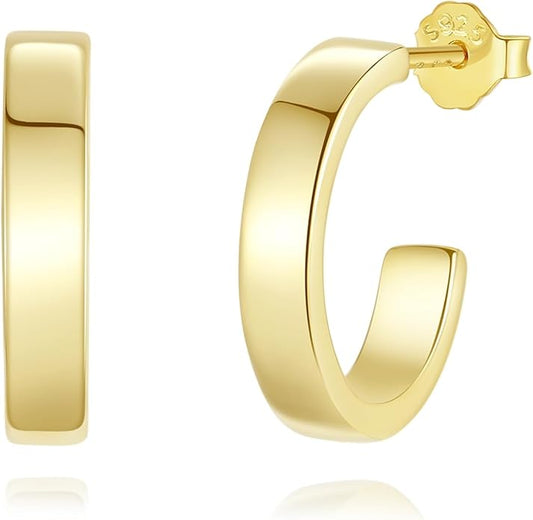 Sterling Silver Chunky Gold Hoop Earrings for Women