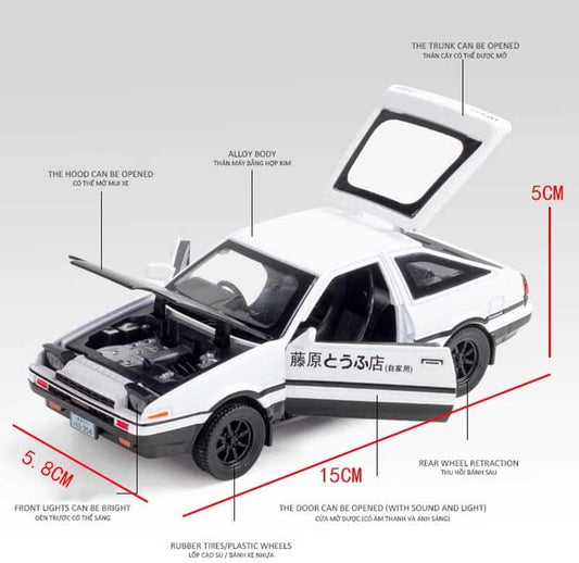 Car miniature: Black-White Trueno AE86 Alloy Model Metal Diecast (1:32)