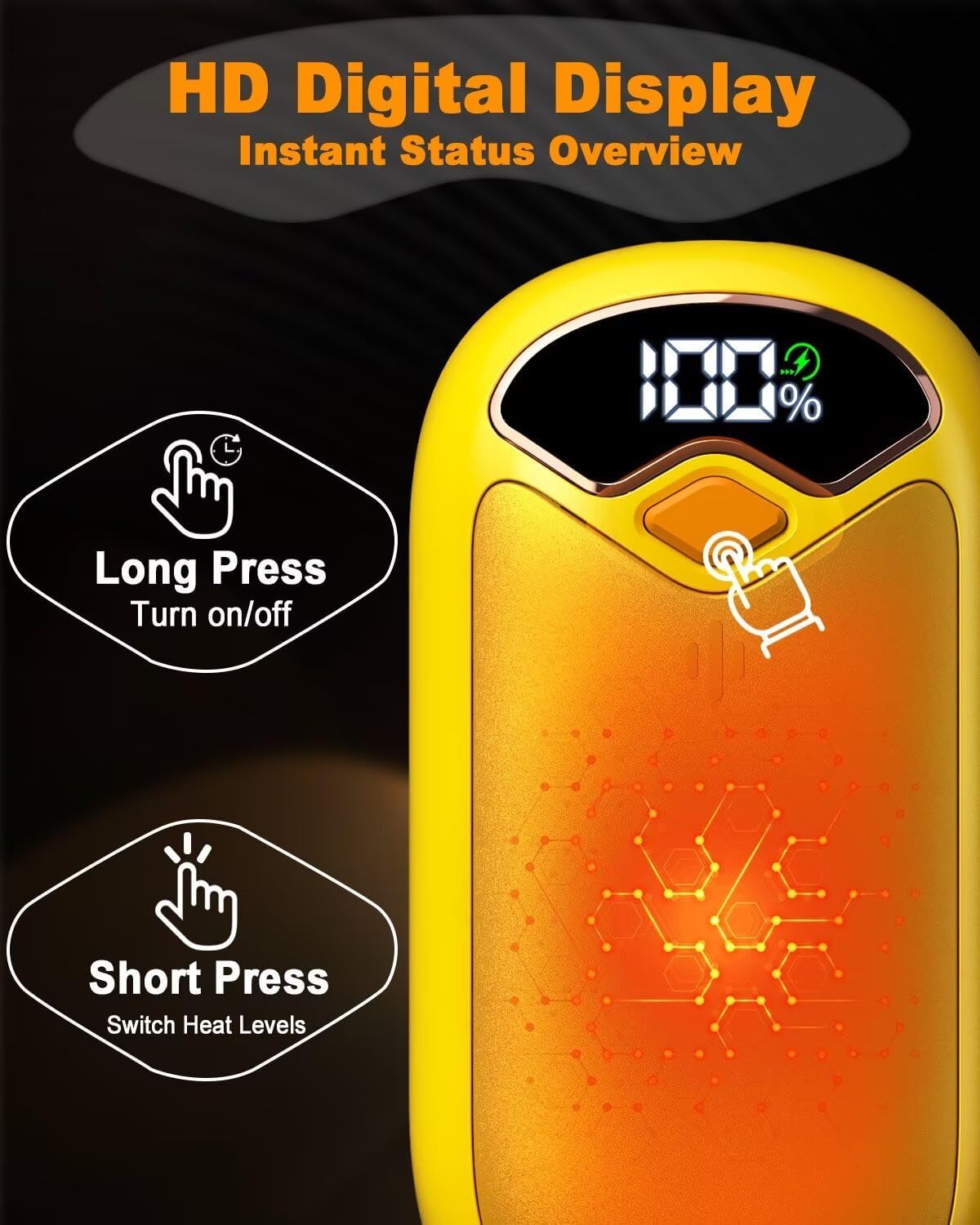 - 【Fast Heating】Say goodbye to cold fingers and long waits. Our electric hand warmers use an advanced chip control system that heats up in seconds. Each hand warmer offers 4 heating settings, no longer requiring long preheating in advance. The system ensures safety and stability, allowing you to precisely adjust the heat level to quickly dispel the cold