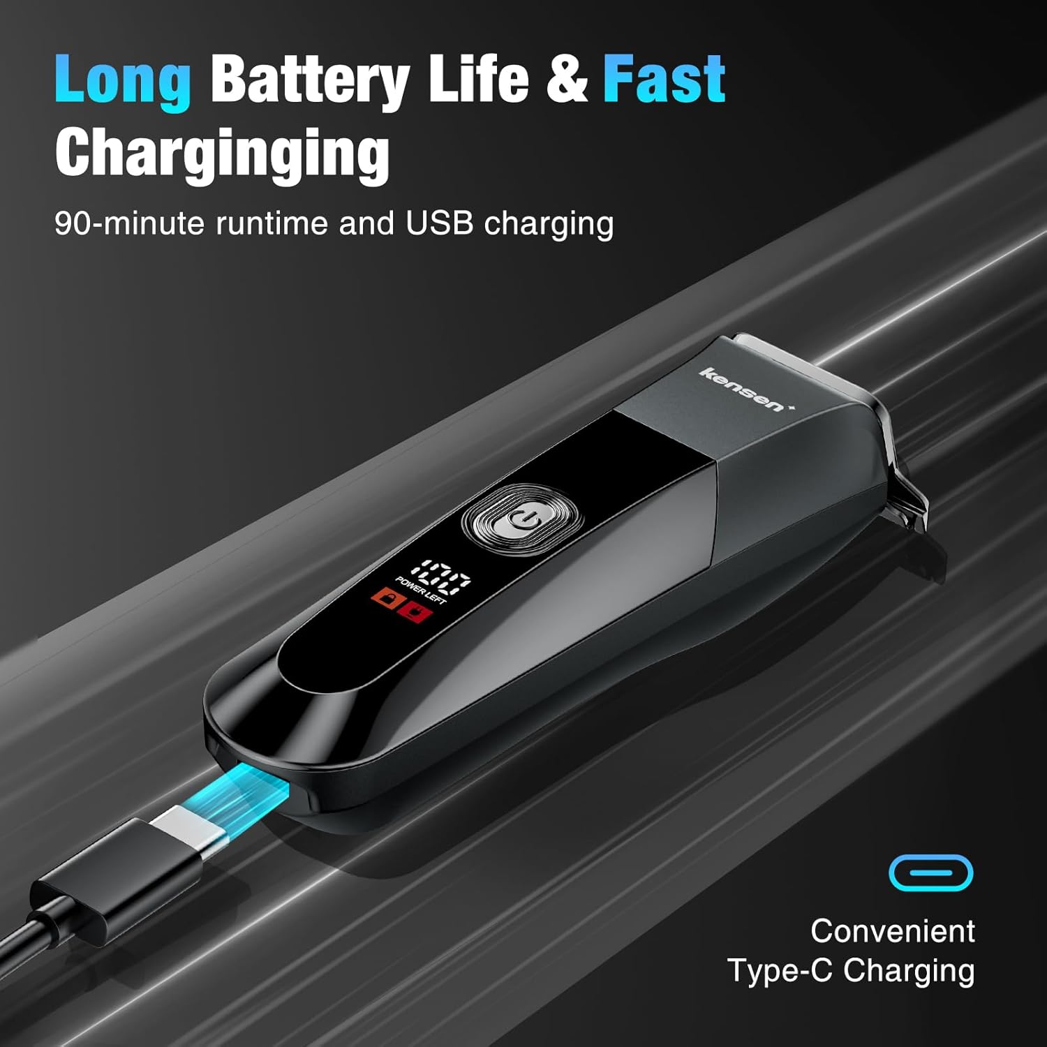 - 90-Min Cordless Trimmer for Men with USB quick-charge enables 30+ full stylings, supporting daily beard maintenance and electric shaving machines for men performance.