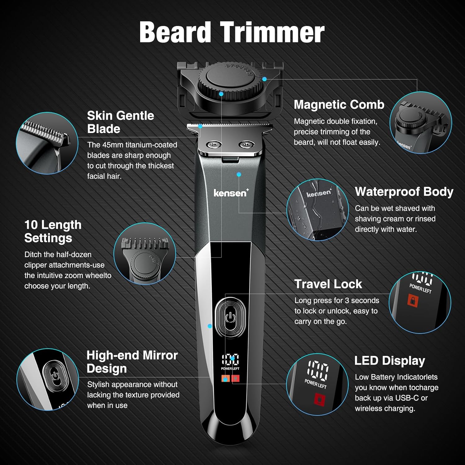 KENSEN Beard Trimmer for Men, 9 Length Adjustable Blade