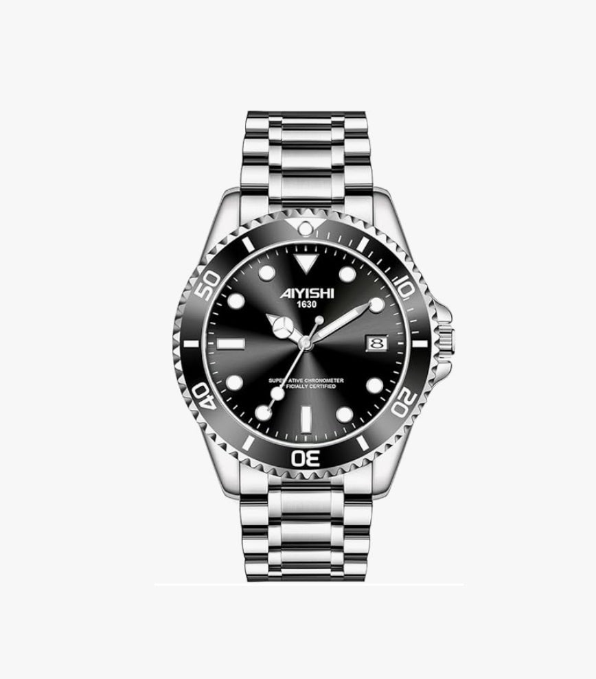 AIYISHI - Luxury Silver Stainless Steel Watch, Rotatable Bezel Classic Business Dress Wristwatch.