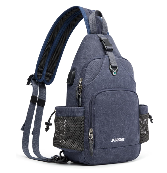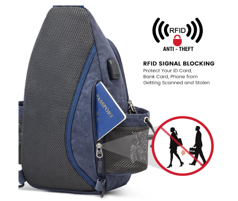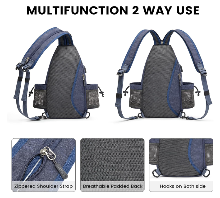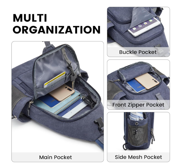 Sling Bag Canvas Crossbody Backpack with USB Charging Port & RFID Blocking, Hiking Daypack Shoulder Bag for Travel Outdoor(Dark Blue).